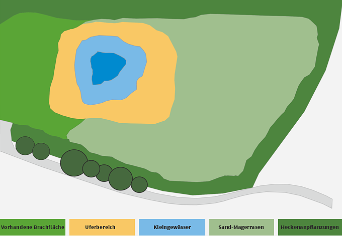 Ein Kleingewässer mit Flachwasserbereich, dessen Größe sich den natürlichen Grundwasserschwankungen anpasst, bietet Amphibien, wie Kammmolchen und Laubfröschen neue Areale. Auch viele andere Tier- und Pflanzenarten wie Libellen, Wasserkäfer oder der Pillenfarn finden hier einen Lebensraum. Verschiedene Vogelarten, wie Graureiher oder Weißstorch finden reichlich Nahrung. An Kleingewässern sind Erfolge im Naturschutz sowohl hör- als auch sichtbar.