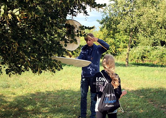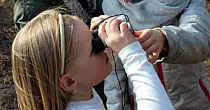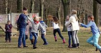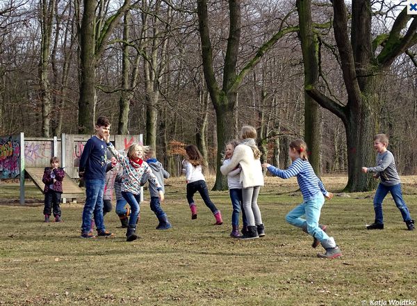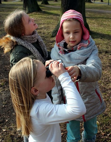 Silke Brodersen und Christine Pracht hatten ein abwechslungsreiches Programm zu diesem Frühlingsboten zusammengestellt und brachten den Kindern spielerisch das Leben der Stare näher. Nach einer kurzen Einführung suchten die Mädchen und Jungen mit Ferngläsern nach möglichen Bruthöhlen, die in den alten Bäumen zu finden sind. Im Wipfel der Eichen konnten die Kinder sogar Stare beobachten und ihrem Gesang lauschen. Bei Spielen wurde der Formationsflug der Stare nachgeahmt. "Dieser Schwarm kann vor Greifvögeln wie dem Habicht oder Sperber schützen", erklärte Betreuerin Silke Brodersen.