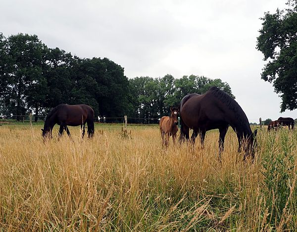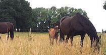 Auch dieses Jahr war wieder eine bunte Gruppe aus 17 Kindern zum Rudi-Rotbein-Termin „Tümpeln auf der Naturweide“ angetreten. Auf mehreren Weiden von Carsten Engelke sind im Laufe der letzten Jahre mehrere Gewässer angelegt und renaturiert worden, die sowohl für Amphibien als auch für viele an Kleingewässer gebundene Insekten als Trittsteinlebensraum dienen. Die Kinder waren natürlich von den dort weidenden Naturschützern, den Pferden, total begeistert. Durch deren Arbeit wird das Ufer offengehalten und außerdem haben die Pferde dabei auch noch Spaß.
